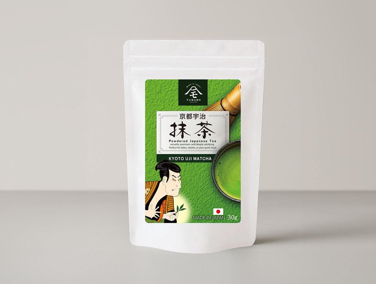 旨みとほろ苦さのバランスよく、鮮やかな色調の京都府産宇治抹茶です。なめらかな口当たりで、抹茶ラテにオススメです。